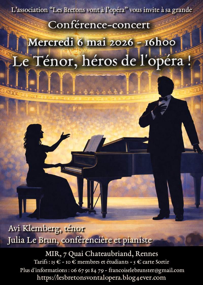 Vous êtes les bienvenus à la grande conférence–concert annuelle de l’association Les Bretons vont à l’opéra, à la Maison Internationale de Rennes.